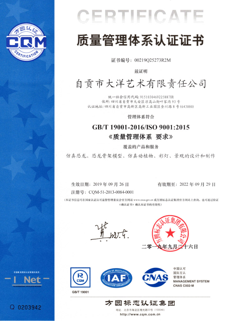 自A(ch)市大z艺术有限责d司简介自贡市大洋艺术有限责Q公司Qؓ中国恐龙展品制作基地Q成立于2009q_是专业从事恐龙化石骨架标本模型、仿真活体机器恐龙、仿真雕塑恐龙、玻璃钢恐龙、恐龙游乐场互动讑֤{展品的研制开发、出售和展览的高U技企业。ƈ在中国古生物专家的指gq行开发制作恐龙和仿真动物展品Q所制作的恐龙展品,被中国科学院鉴定为“优UU研作品”,被誉为“侏|纪”的再现者。公司占地面U?0000qxcI有一支专业研制恐龙标本模型和机器恐龙展品的职工队伍和一套具有先q性能的生产设备,q生产能力ؓ500万美元,其中U?0%的出口。我们研制和生的恐龙展品,以其造型逼真、表皮质感强、动作协调自如、组合情节科学、h(hun)格合理、售后服务佳而倍受国内外客L青睐和好评。十多年来,我们先后为美国、加拿大、阿根h(hun)、秘鲁、匈牙利、奥地利、荷兰、澳大利亚和我国的香港、台湑֜Z及北京自然博物馆、天z自然博物馆、上然博物馆、重庆自然博物馆、浙江自然博物馆、成都理工大学博物馆、太原中国煤炭博物馆、内蒙二q浩Ҏ(gu)龙博物馆、武汉中国地质大学博物馆、西峡恐龙蛋博物馆、朝阳鸟化石博物馆、河源恐龙博物馆、常州中华恐龙园、云南禄C界恐龙谷{地区的博物馆和恐龙主题公园以及人民公园制作和提供了相当数量的恐龙展品。同Ӟ先后为重庆恐龙公园、v南恐龙公园、晋江新世纪恐龙公园、番古生物博物馆、东莞古生物博物馆、西峡恐龙蛋博物馆设计和陈列布展?/div>